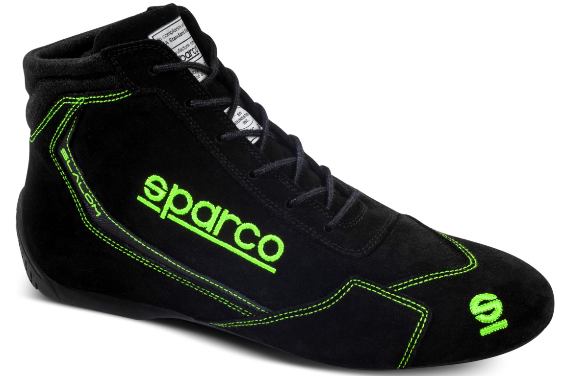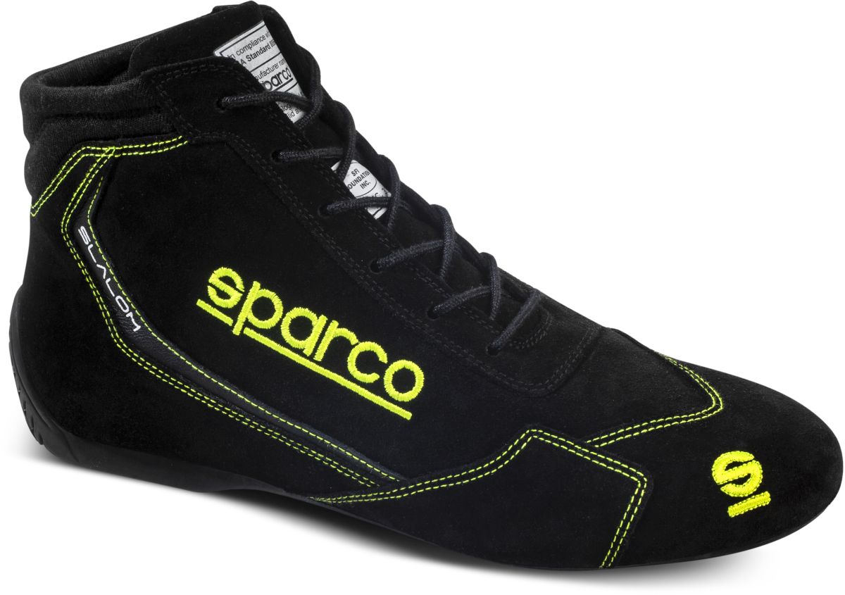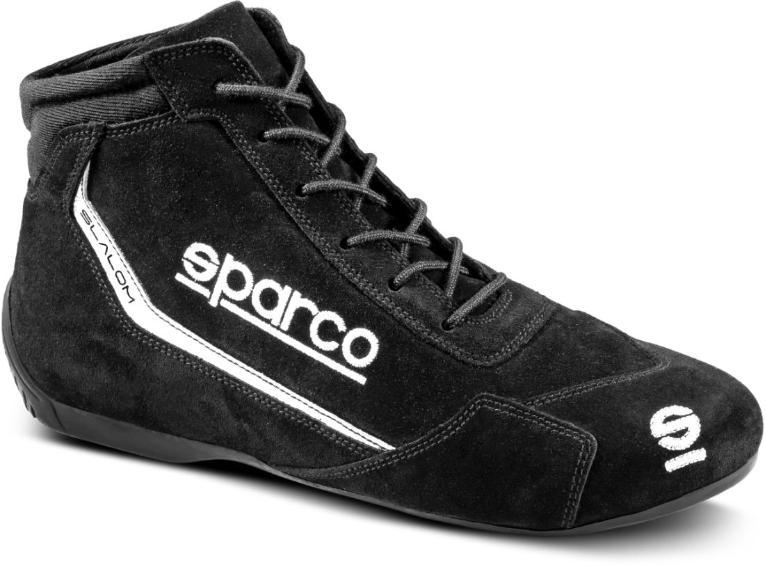 Slalom is the latest version of the most popular Sparco rally shoe, which has now been redesigned to comply with the latest FIA 8856-2018 homologation for increased protection against heat and flames. Made with a full suede upper with embroidered logos and a leather insole for added comfort. The soft fabric insert at the back of the upper allows for optimal ankle movement while maintaining maximum comfort. The shoe features a natural rubber sole that is resistant to oils and fuel, providing excellent grip and sensitivity on both pedals and when walking on the paddock.